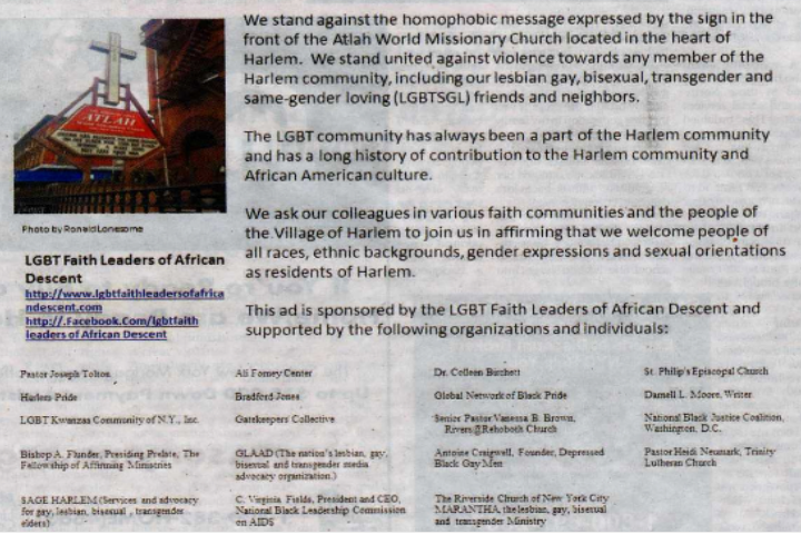 Posted on 24 March 2014. Tags: ATLAH World Missionary Church, Homo Demons, LGBT Faith Leaders Of African Descent, NY Amsterdam News, Ronald Lonesome